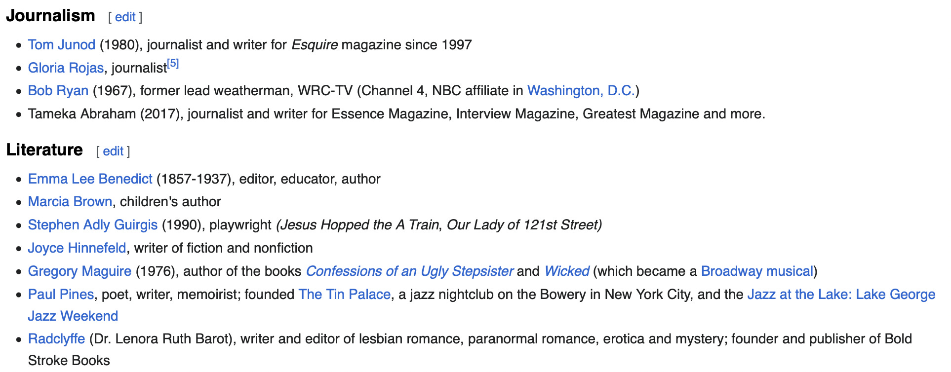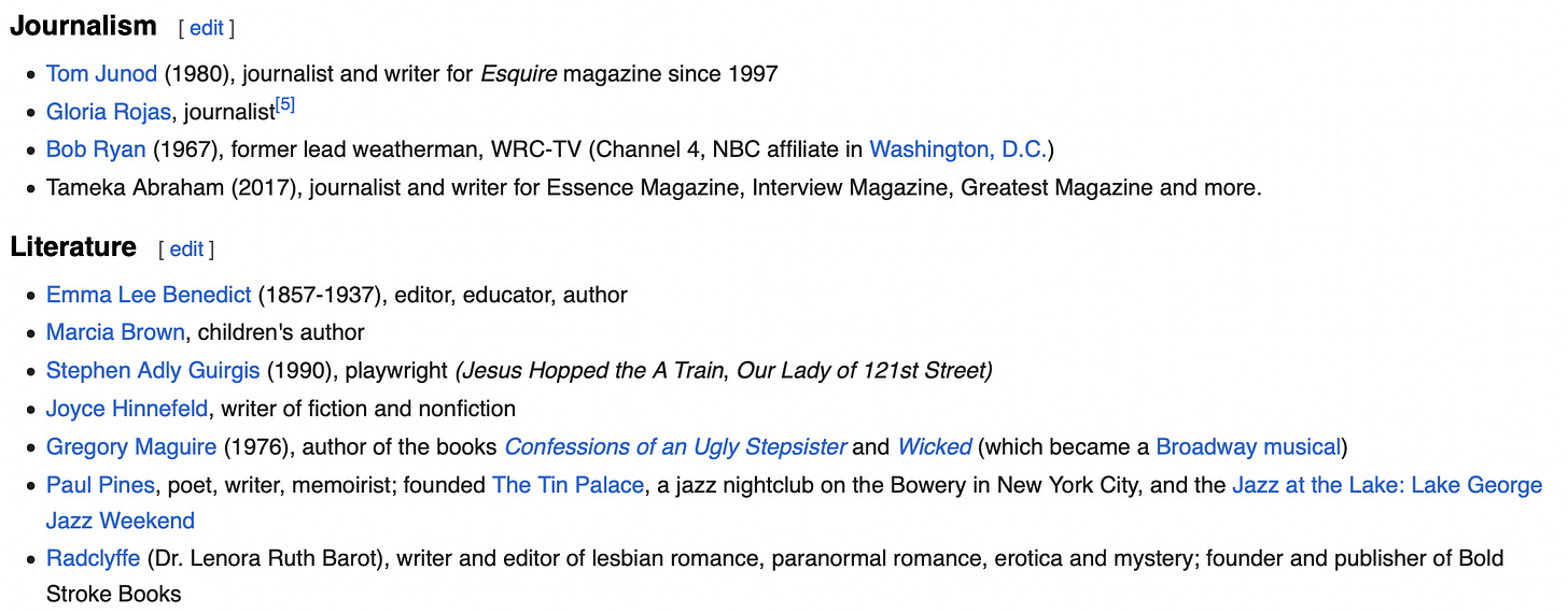 No, really—here’s a list of the writers who are “notable alumni” from Wikipedia: