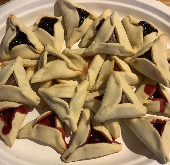 The existence of the vaccines gives me hope. Other things giving me hope: the advent of mutual aid organizations, in Kingston and elsewhere. Acts of kindness, of which I have often been a beneficiary—the friend who helped us make a fire pit, and who also helps us shovel when it snows. The friends who sent condolence cards and flowers after Jean’s passing. The woman I’ve never met who baked me a plate full of gluten-free hamentaschen after I posted on Facebook asking where I could find some locally.