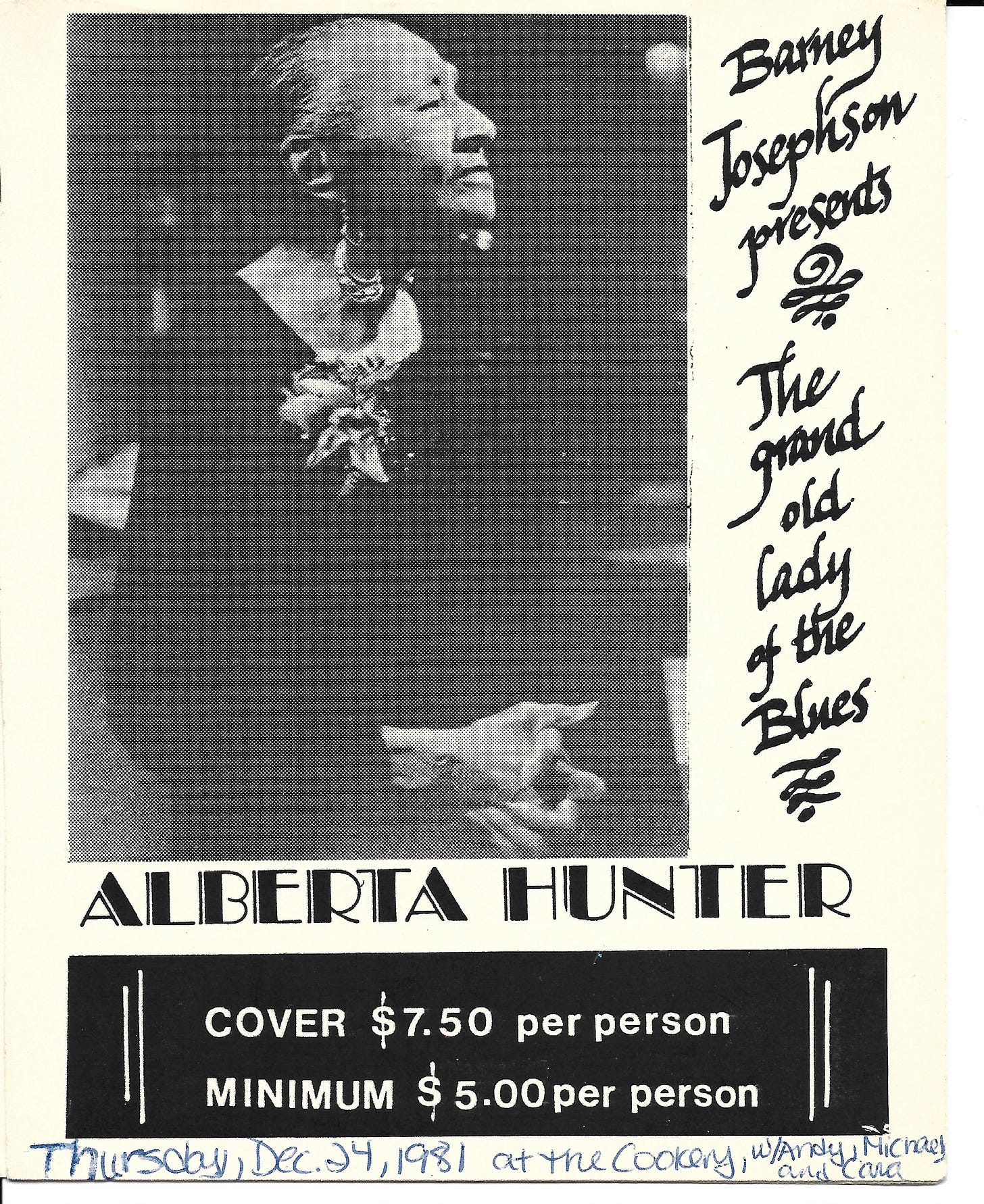 3. I swiped this card from the table where I sat on a double date at The Cookery on Christmas Eve, 1981, when I was 16. (The Cookery jazz club was on the corner of 8th Street and University in Manhattan, where BBQ is.) My first boyfriend and I, along with another couple, landed there after trying and failing to get into other bars because we were underage. The drinking age in New York State was just 18 at the time. (The State Liquor Authority would soon raise it, first to 19 just after I’d turned 18, then to 21 just after I’d turned 19. It meant that twice, those of use born in 1965 were granted the right to drink and purchase alcohol, and then had that right revoked with no grandfather clause.)