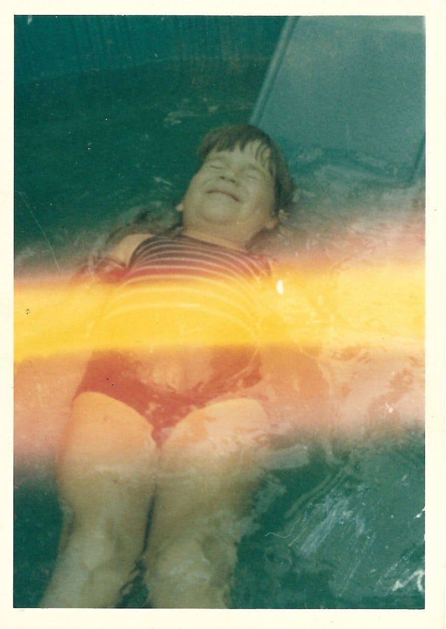 There’s one little girl in particular who stands out, a 3-and-1/2-year-old daughter of friends. She’s always excited to see us, maybe because Brian and I have taken turns helping her put on her goggles, and hanging out beside her for a bit as she floats with the help of her water wings. Each time she regales us with her summer adventures—where she went, who she saw, where she and her family are headed next.