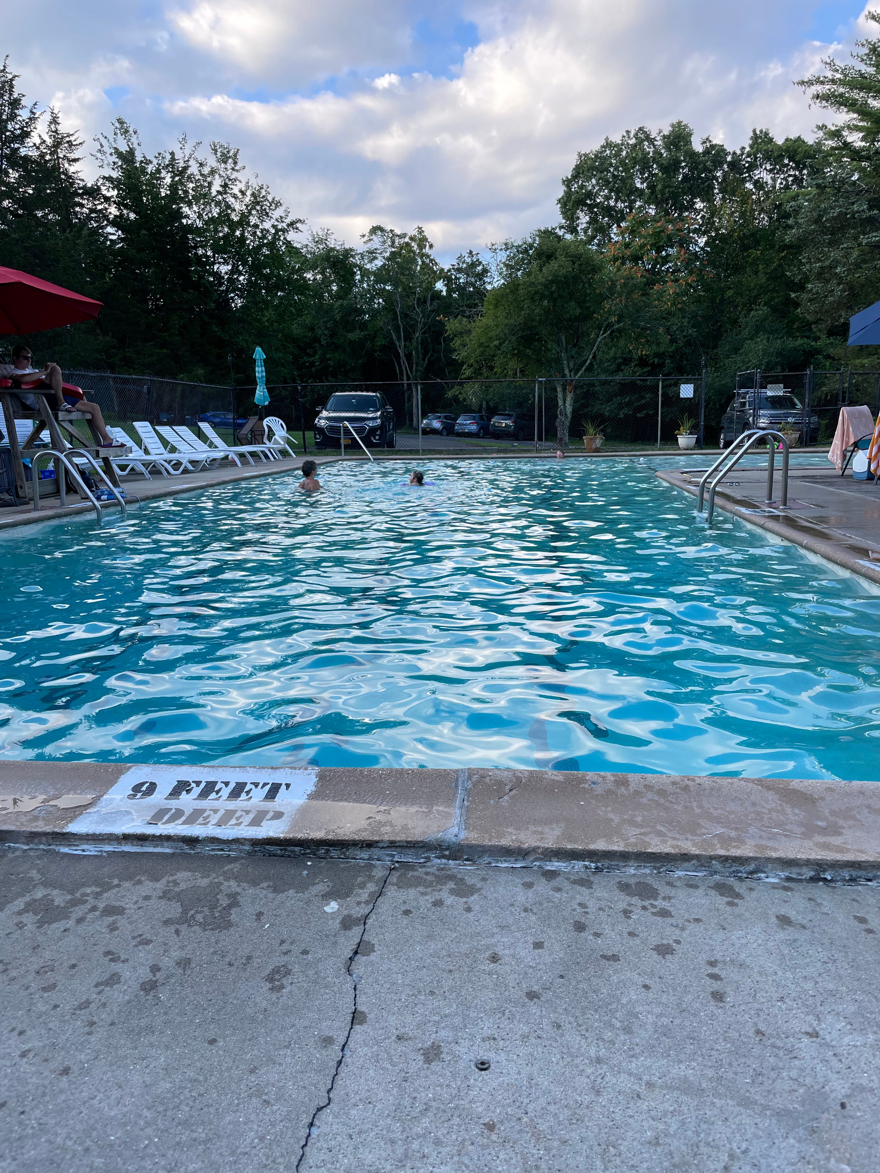 True to form, he was resistant when I told him I thought we should join the pool—in all fairness, not only because he was being a stick in the mud, but also because this particular pool, one of very few to join in the area, is actually the centerpiece of a tiny day camp that operates summer weekdays. There are also tennis courts, a basketball court, and an indoor structure festooned with small children’s finger painting and other arts and crafts projects. Adult members—mostly parents of small campers—are welcome in the evenings and on weekends.