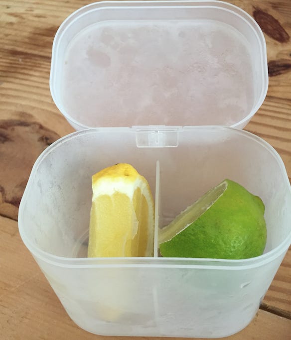 (This Muji two-compartment food container ā which I use to store whichever lemon and lime are currently in play in my refrigerator ā inexplicably makes me feel as if THINGS ARE GOING TO WORK OUT⦠^^^)