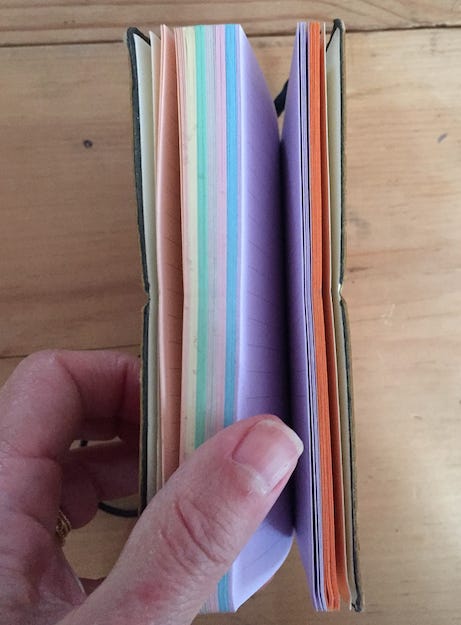 Despite being exceedingly familiar with the product line, I conjured something somewhat un-Muji-like: a fat, multi-subject, multi-colored notebook, replete with section folders, which would help me organize my thoughts on the various essays in my book ā as well as keep track of the other jobs I juggle besides book-writing.